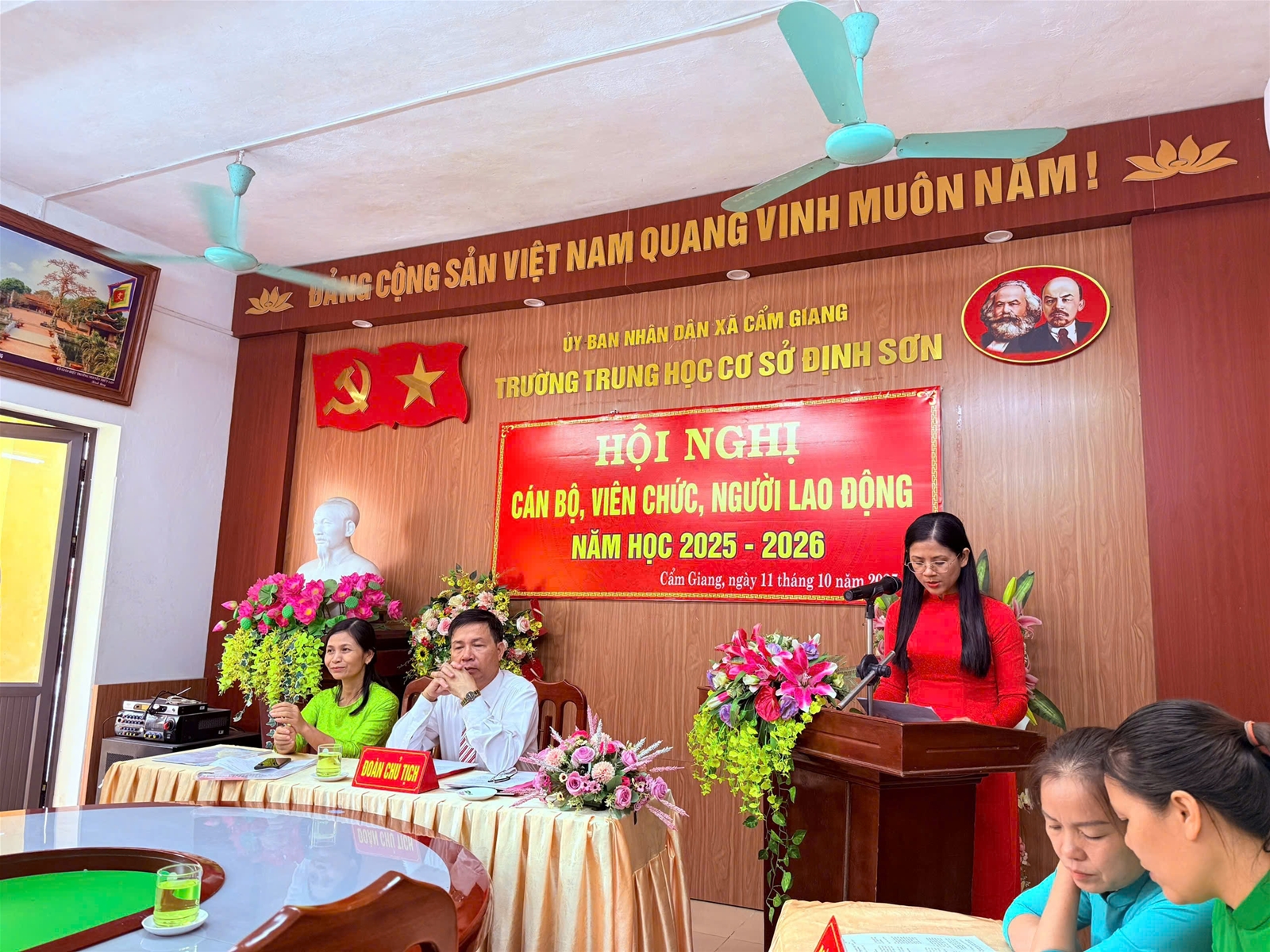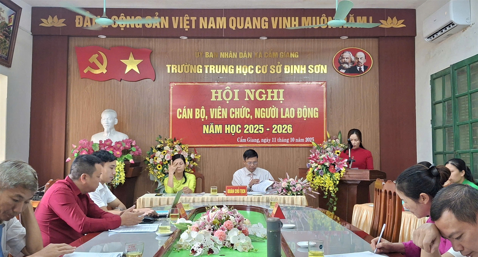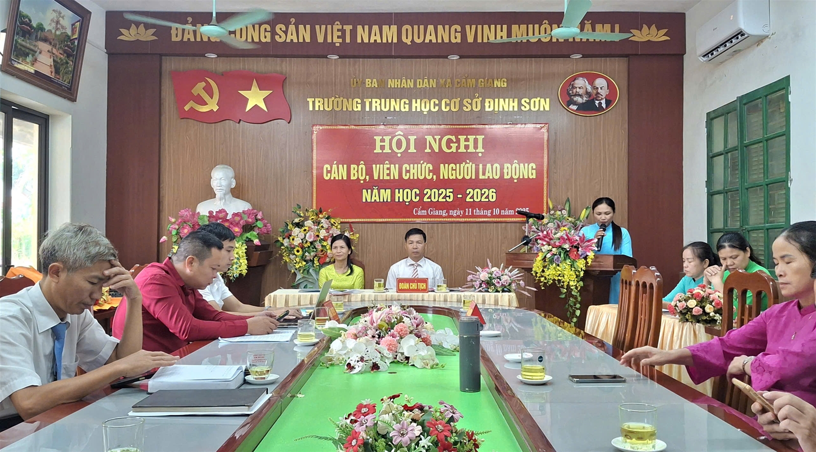 Ngày 11 tháng 10 năm 2025 trường THCS Định Sơn đã tiến hành tổ chức Hội nghị cán bộ, viên chức, người lao động năm học 2025 - 2026.