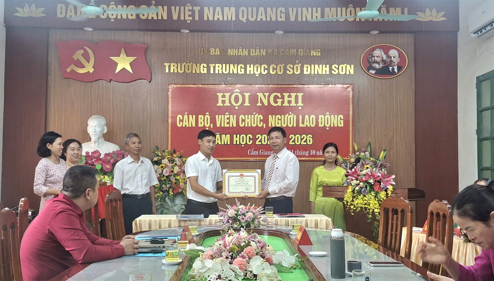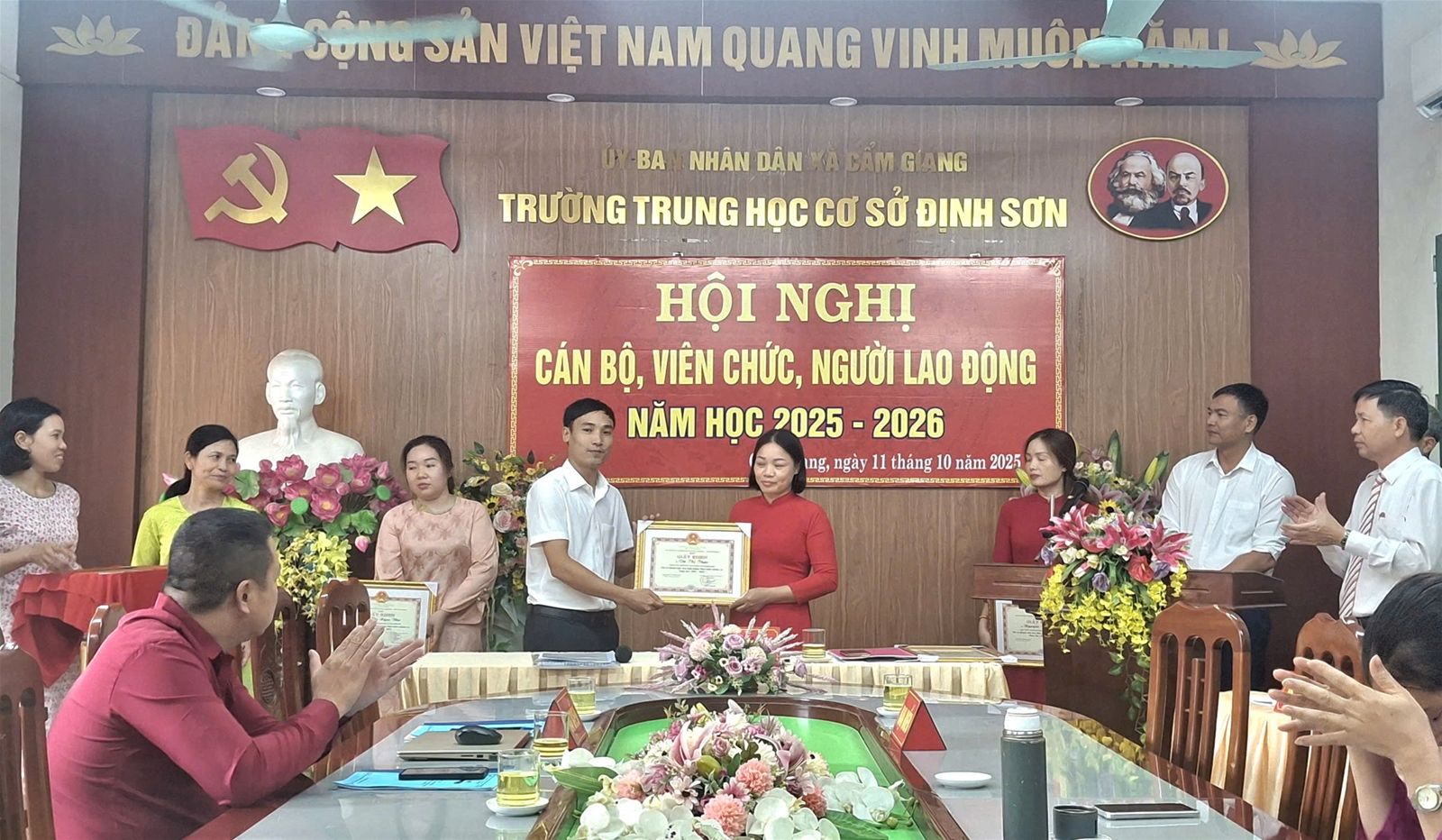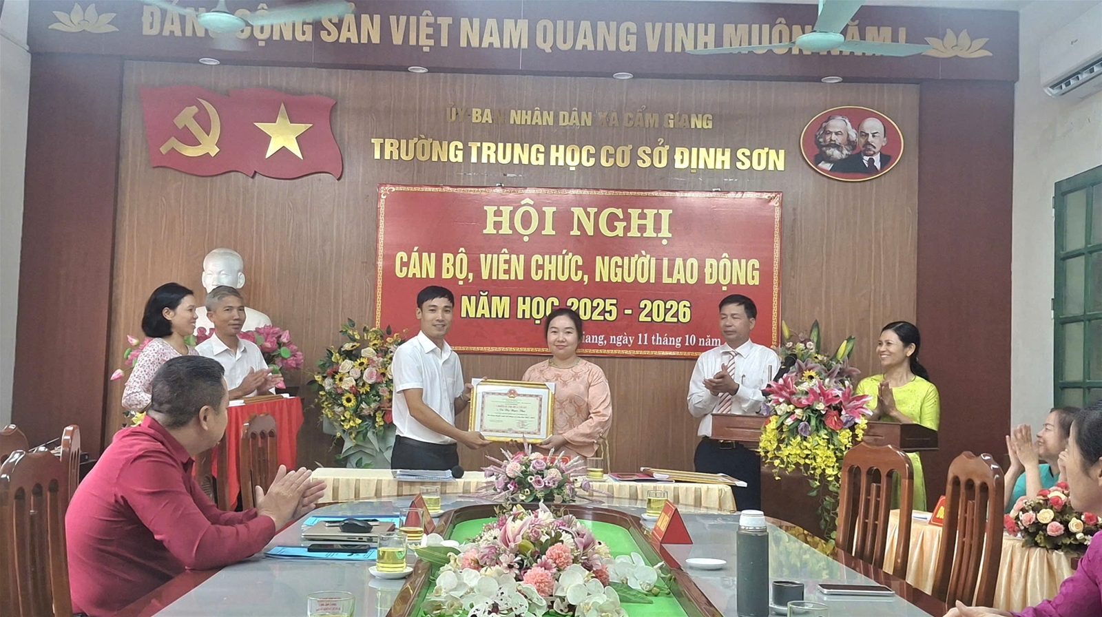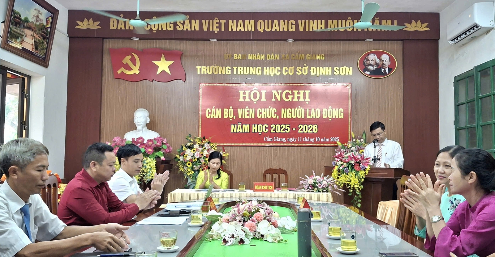 Ngày 11 tháng 10 năm 2025 trường THCS Định Sơn đã tiến hành tổ chức Hội nghị cán bộ, viên chức, người lao động năm học 2025 - 2026.